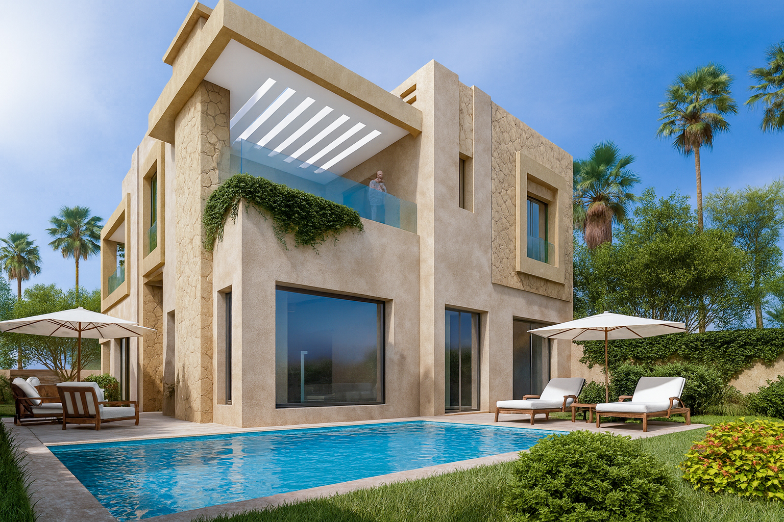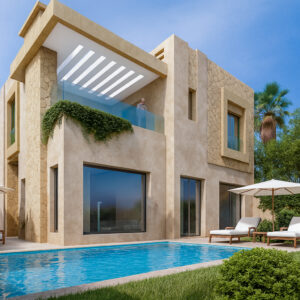 La Villa S.M. à Perly marie harmonieusement la pierre naturelle, les tons beiges doux et la géométrie moderne pour une élégance intemporelle. Le design s’ouvre sur une piscine privée entourée de verdure luxuriante, offrant sérénité et confort. De larges baies vitrées relient intérieur et extérieur par la lumière et la transparence. Une retraite moderne raffinée inspirée de la chaleur méditerranéenne.